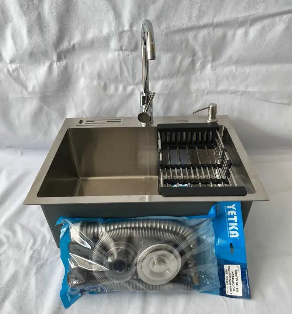 CMB-0010 COMBO - FREGADERO YETKA 60X45 + GRIFERIA FIJA LONCHAM (GPL0540 + GPL0483)
