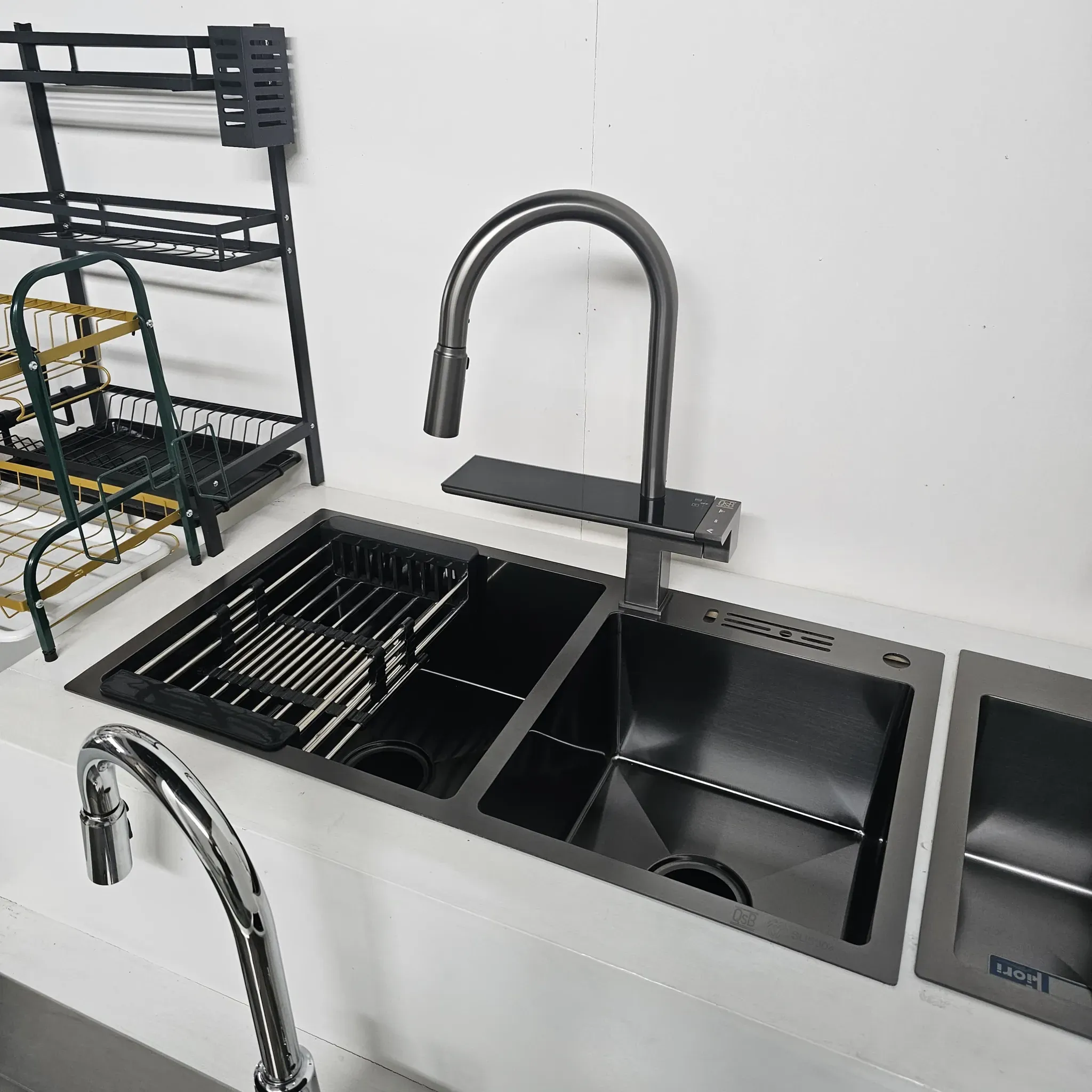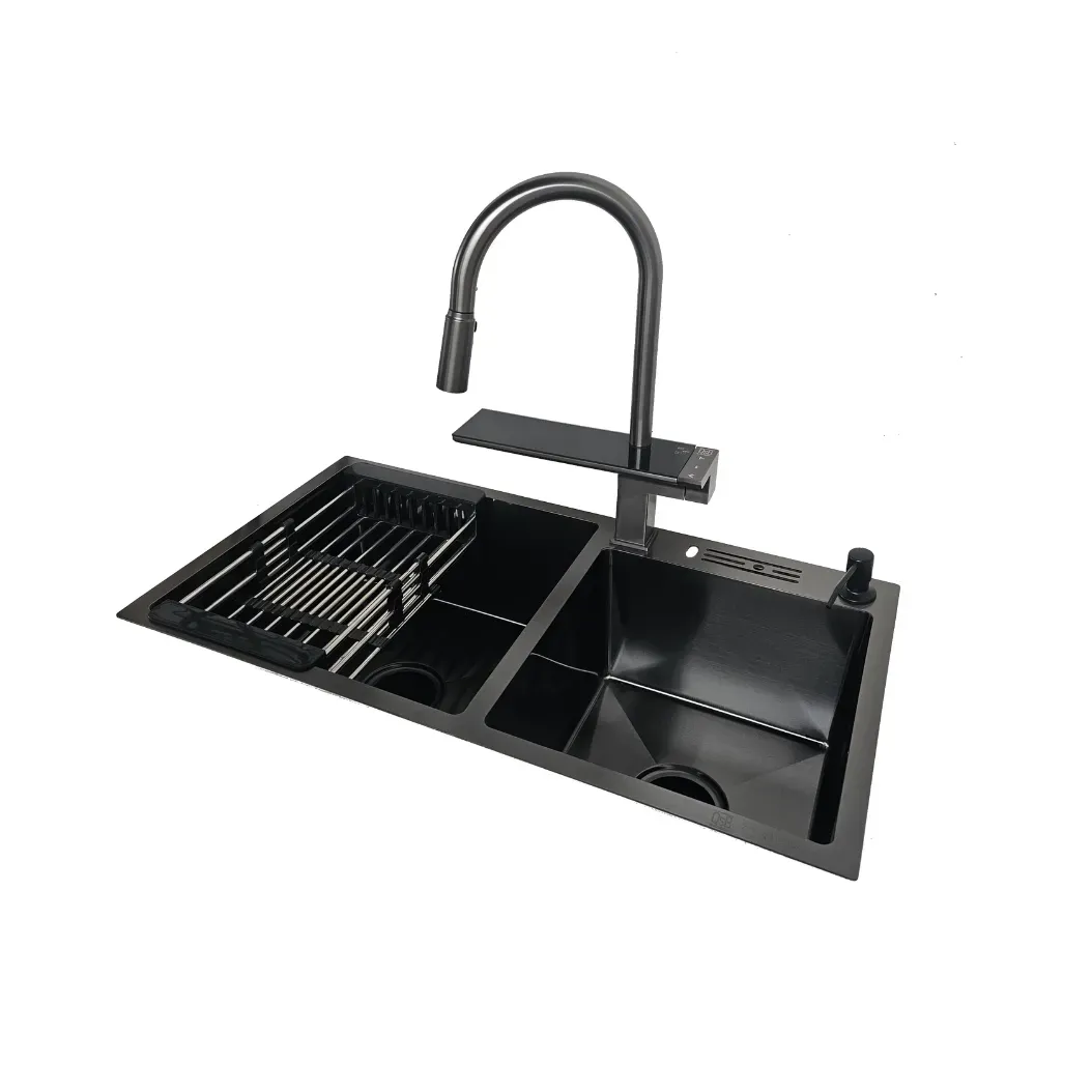 Fregadero QSB Black + Grifería Estirable QSB RAVEN Glass