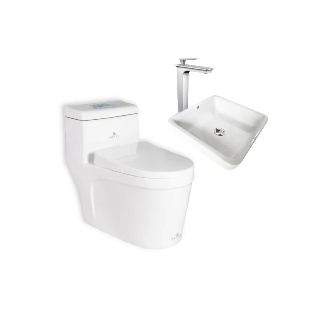 CMB0058 COMBO INODORO PRAGA + LAVAMANOS BASHIELD + GRIFERIA PADOVA (GPL0965+GPL0969+GPL0478+GPL0583)