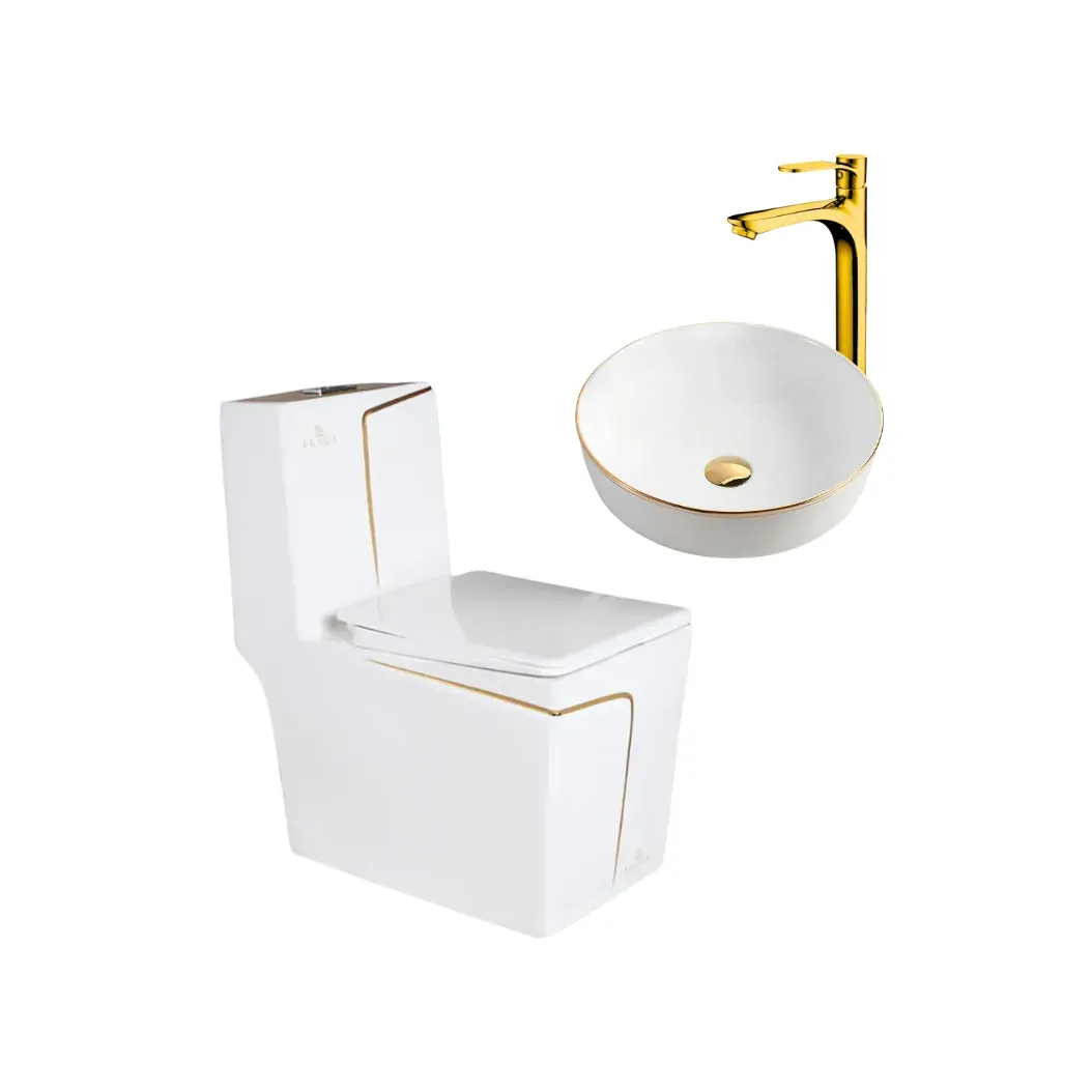 CMB0065 COMBO INODORO PRAGA BL/DOR + LAVAMANOS DOMUM + GRIFERIA FRIA (GPL0649+GPL0922+GPL0983)