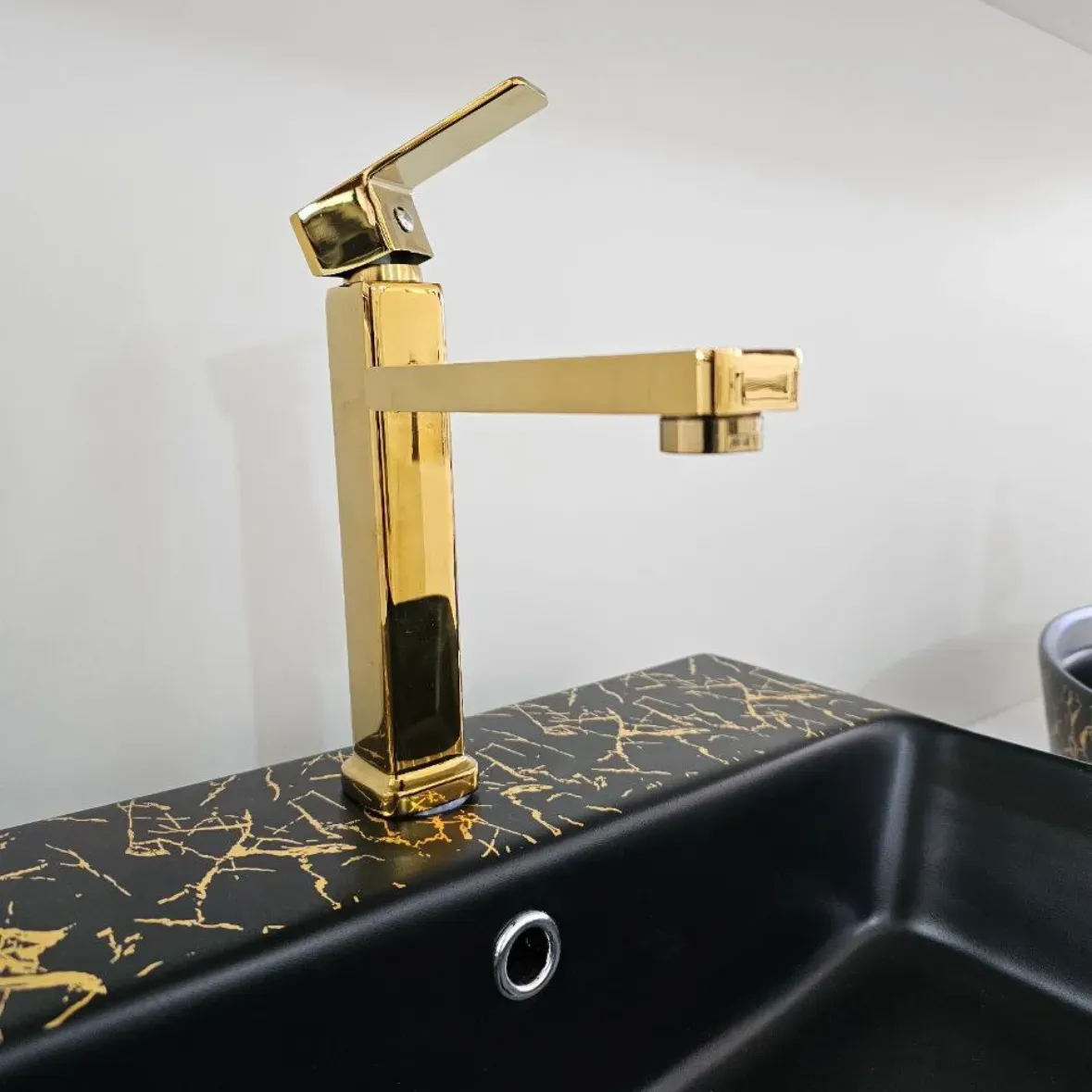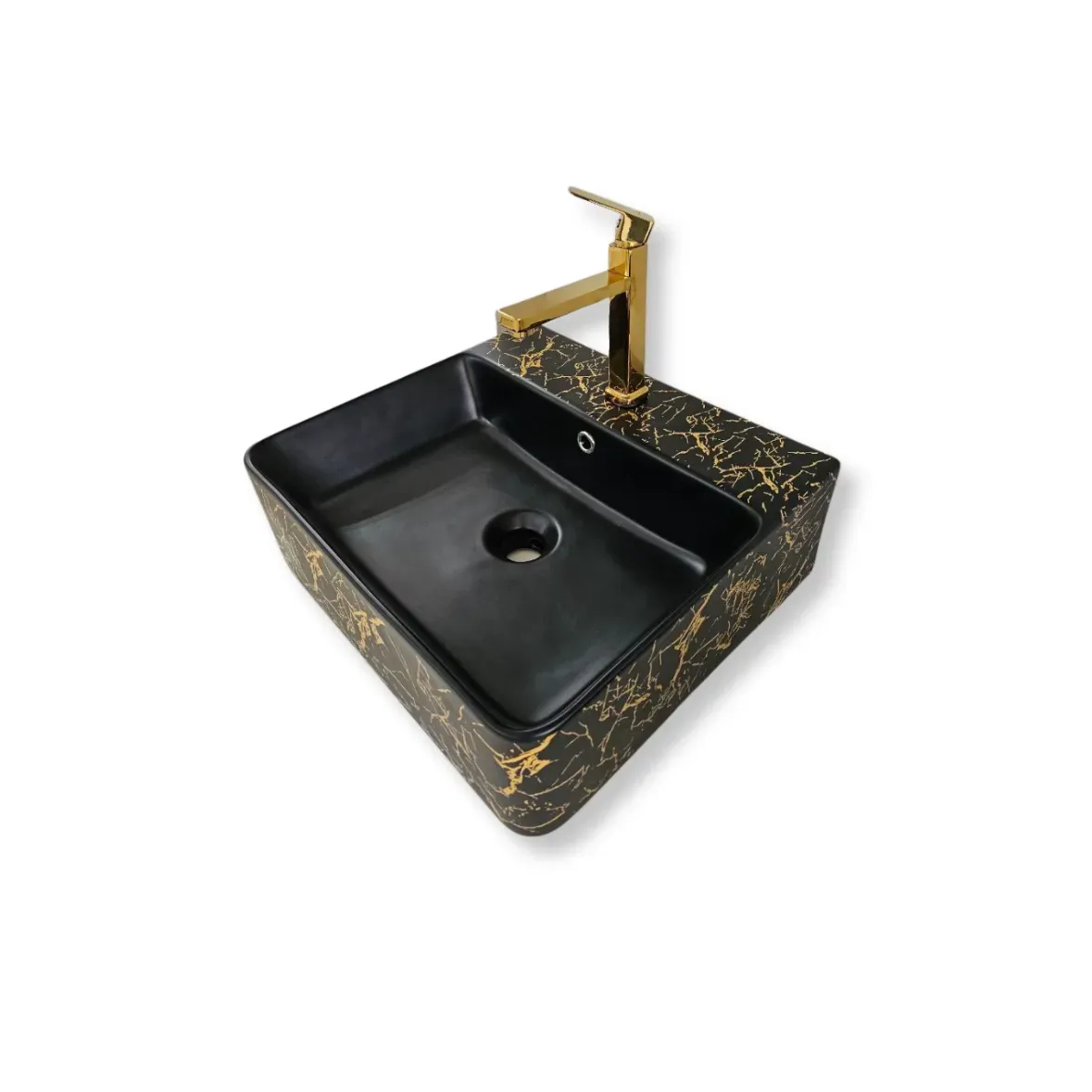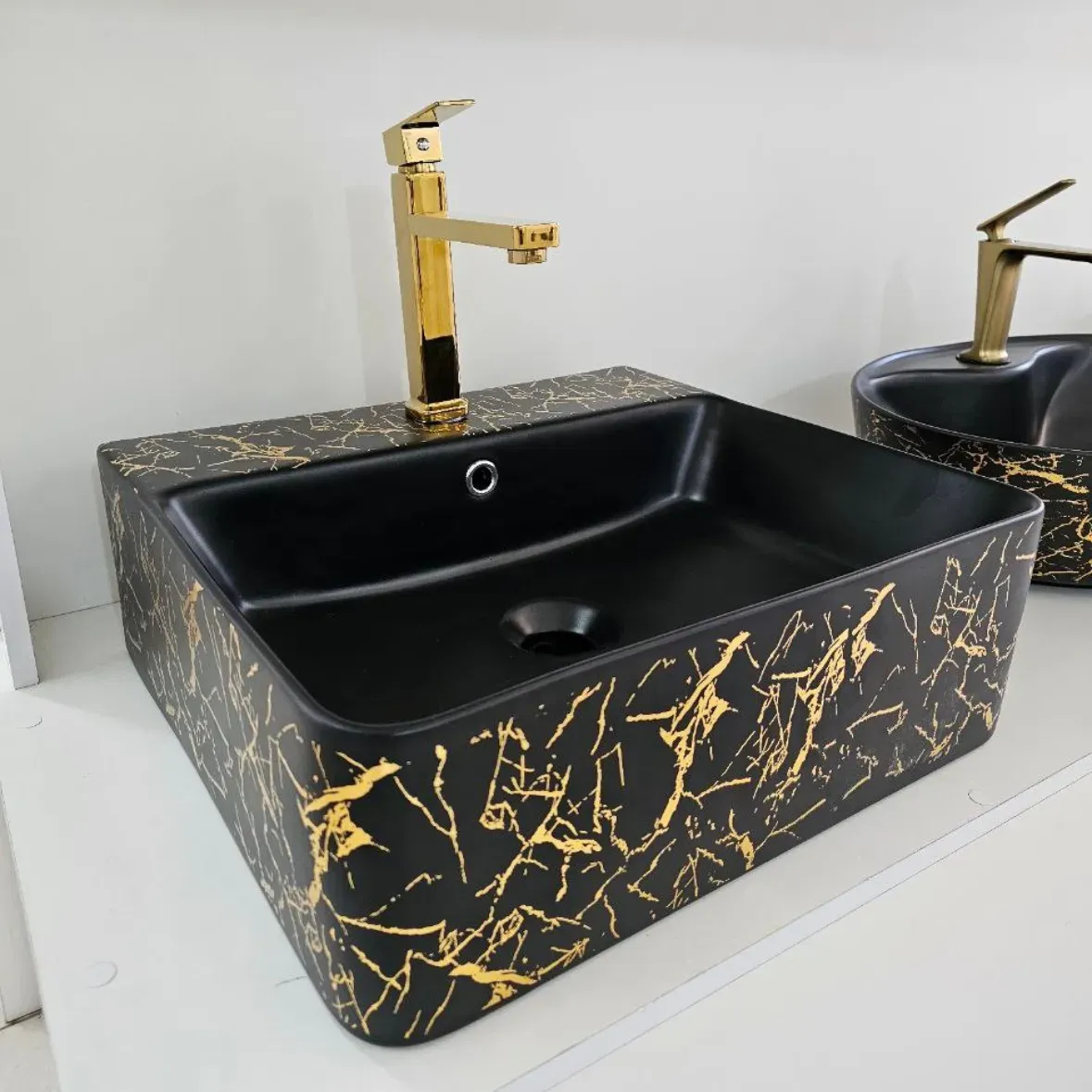 LAVAMANOS SOBREPUESTO CUADRADO NEGRO/DORADO