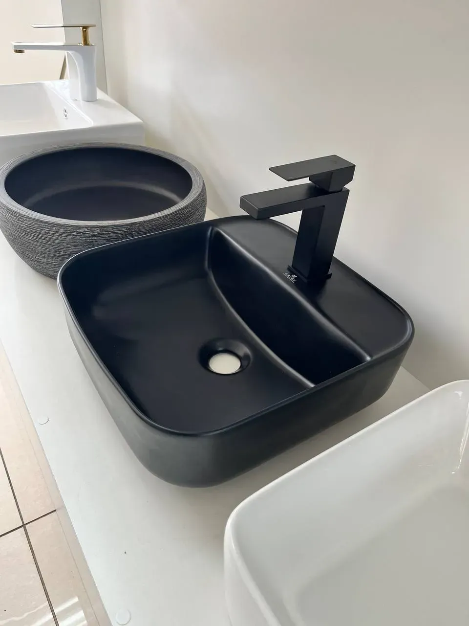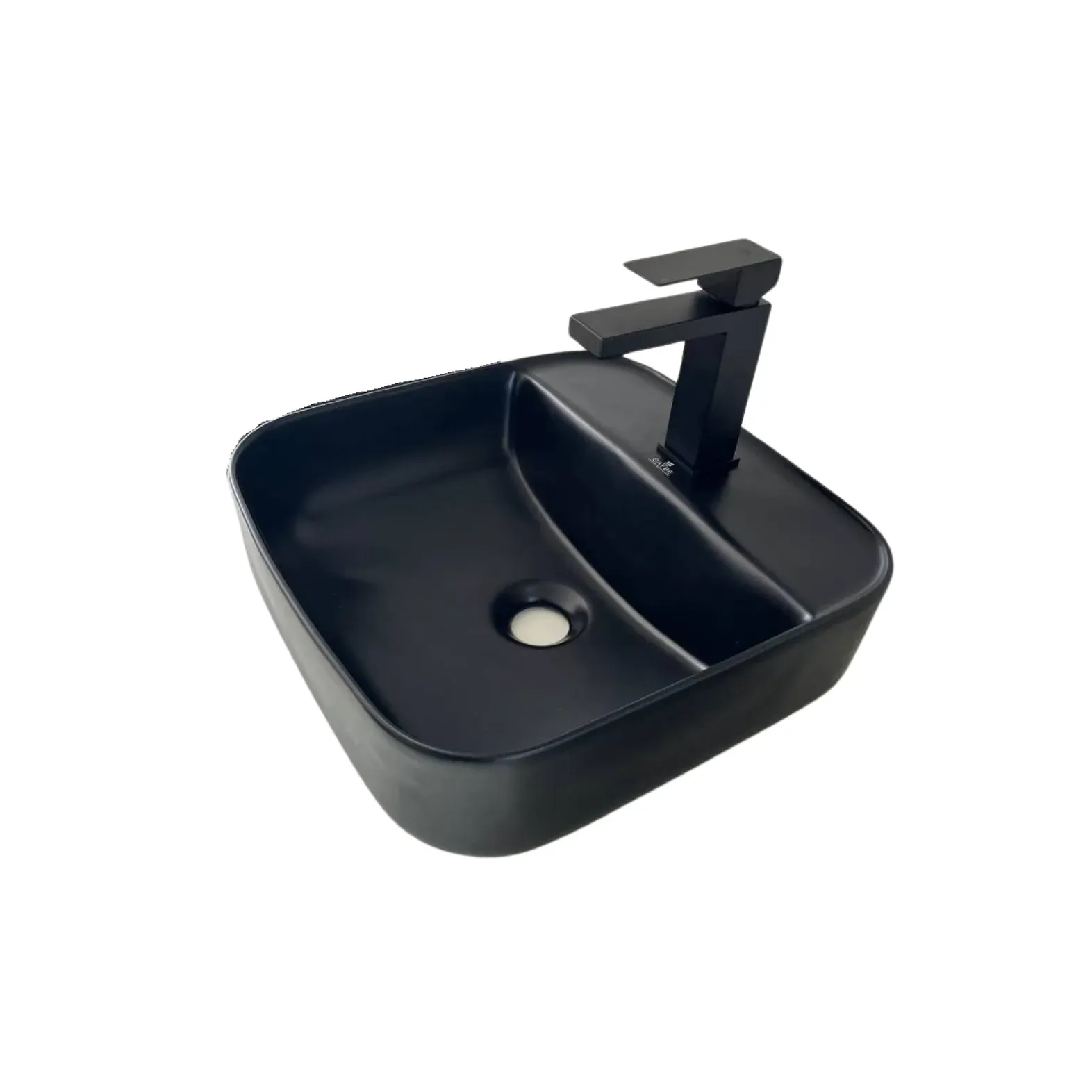 LAVAMANOS SOBREPUESTO CUADRADO NEGRO C/HUECO