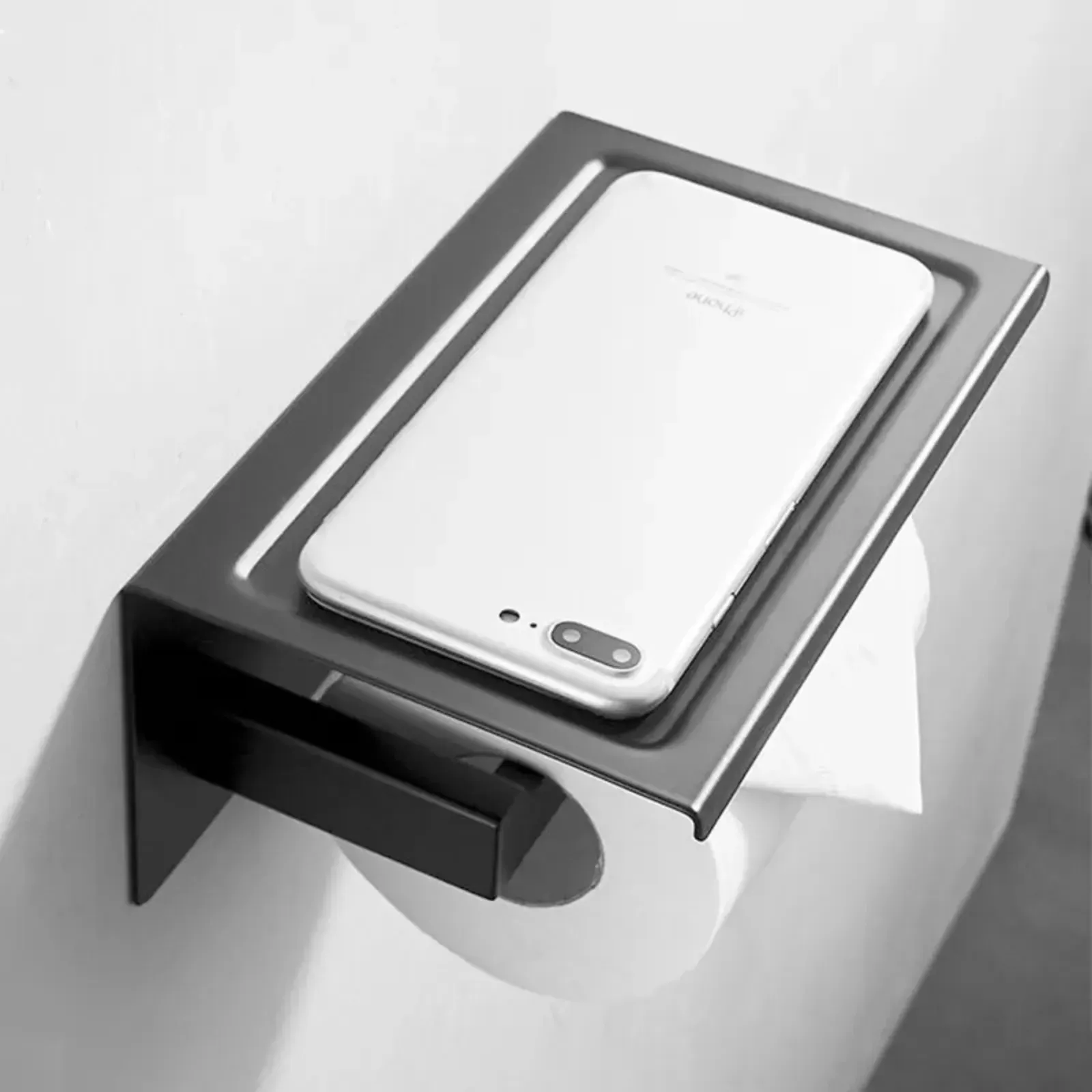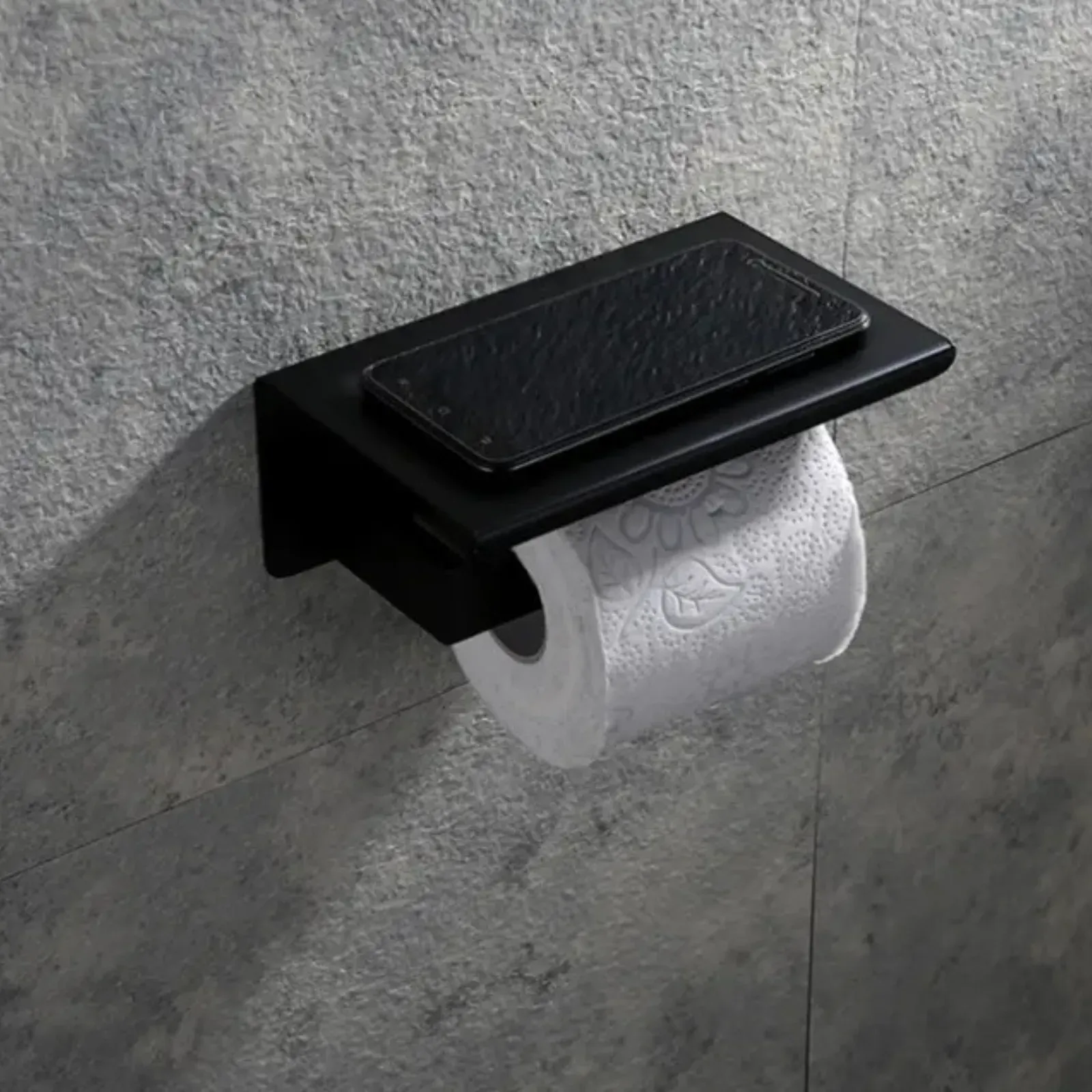 Este elegante soporte de papel higiénico de pared en color negro es la solución perfecta para mantener tu baño organizado y con estilo. Con repisa incorporada para colocar objetos pequeños, este accesorio es funcional y moderno a la vez. ¡Dale un toque de sofisticación a tu hogar!