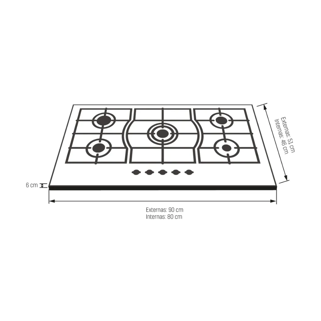 GPL0371 BEELEE ENCIMERA A GAS MUNICH II 5QUEM VIDRIO TEMPL - NEGRO 90X51cm