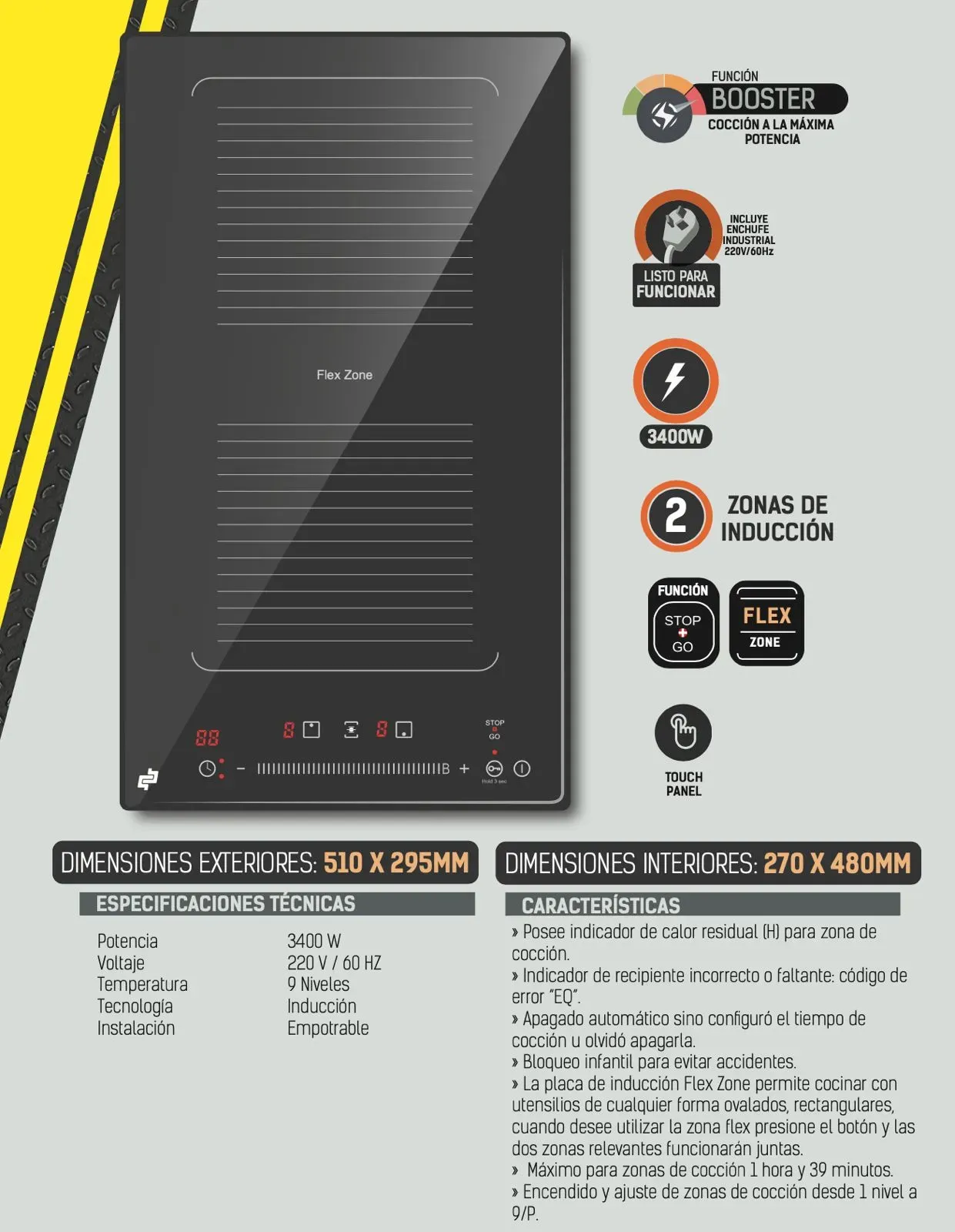 Cocina con 2 quemadores INDUCCION + FLEXZONE.