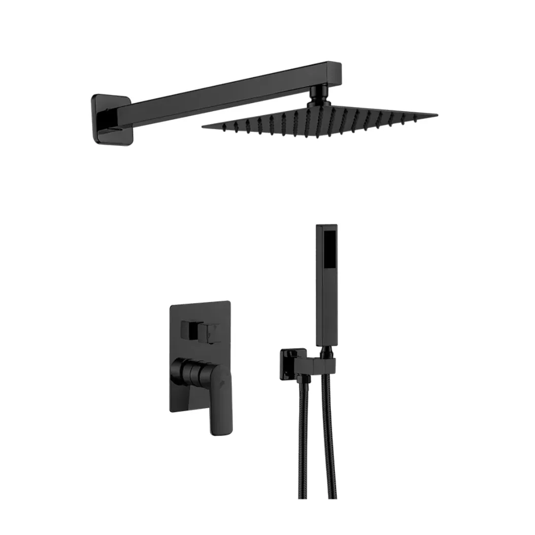GPL0232 BEELEE JGO DUCHA ROMA BLACK 2 FUNCIONES / RECTANGULAR (NEGRA)