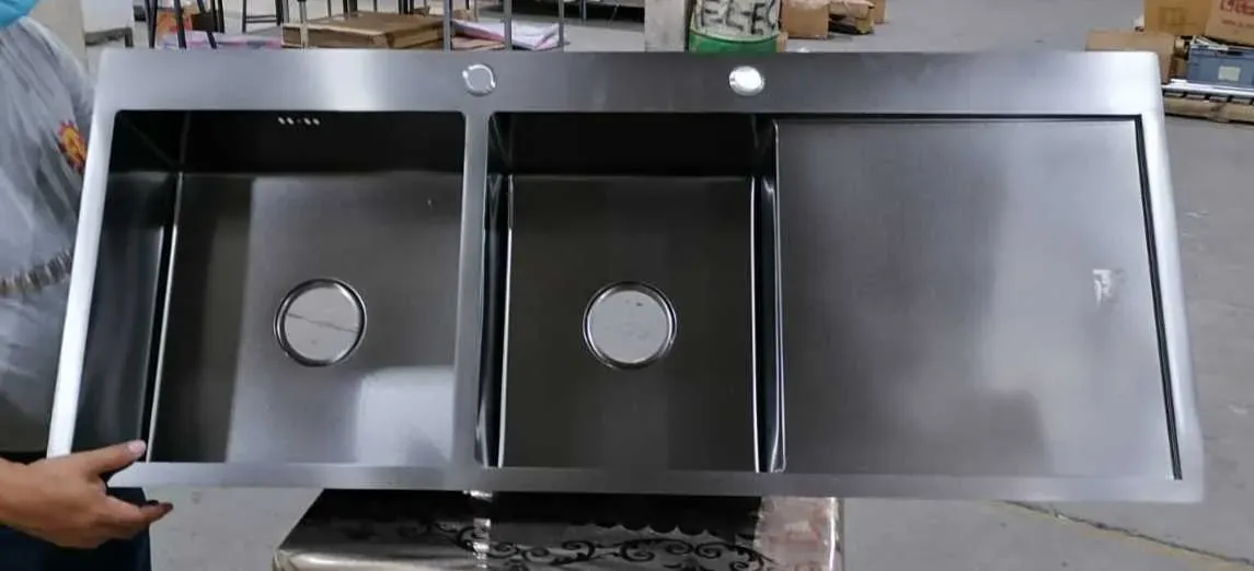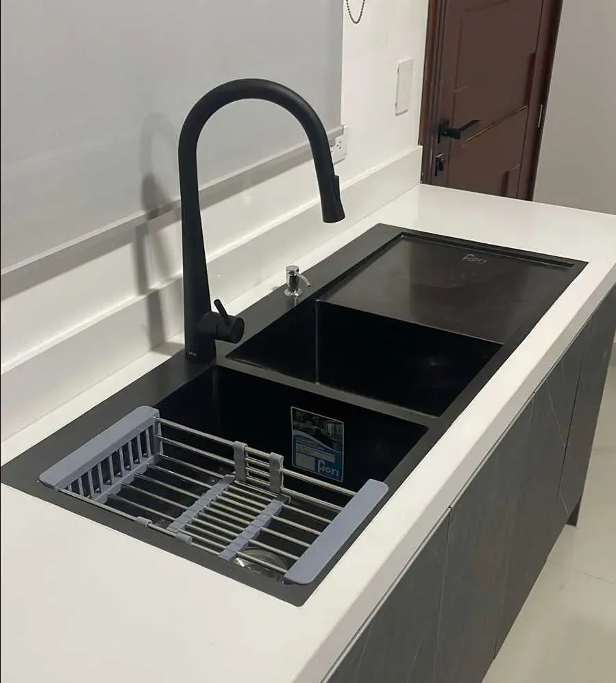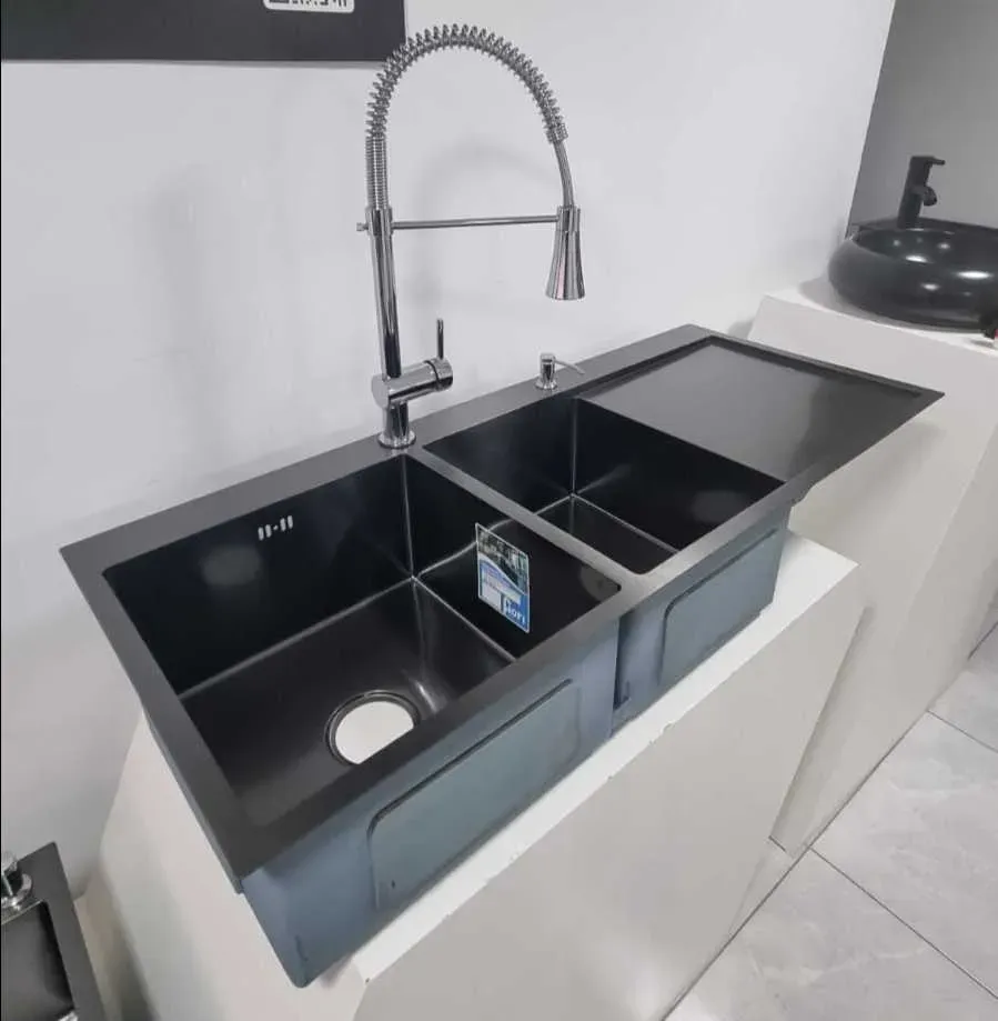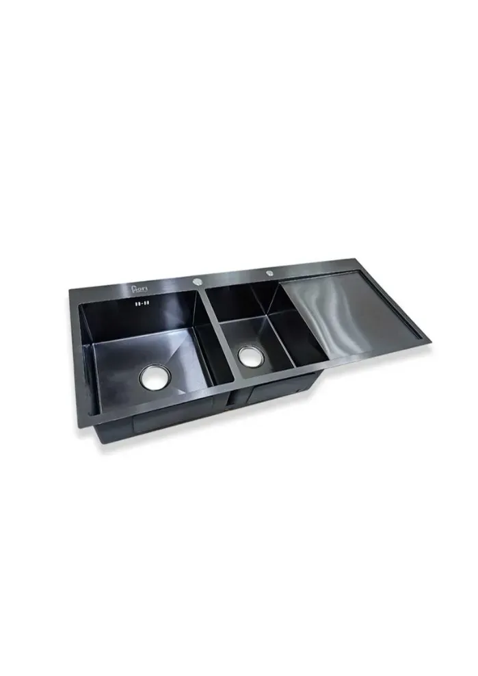GPL0192 FIORI FREGADERO NEGRO DOBLE POZO 120X50 C/FALDA