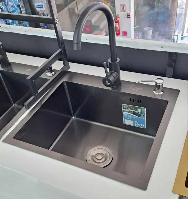 GPL0152 FIORI FREGADERO NEGRO SIMPLE EMP/BAJO C/JAB 50X45CM