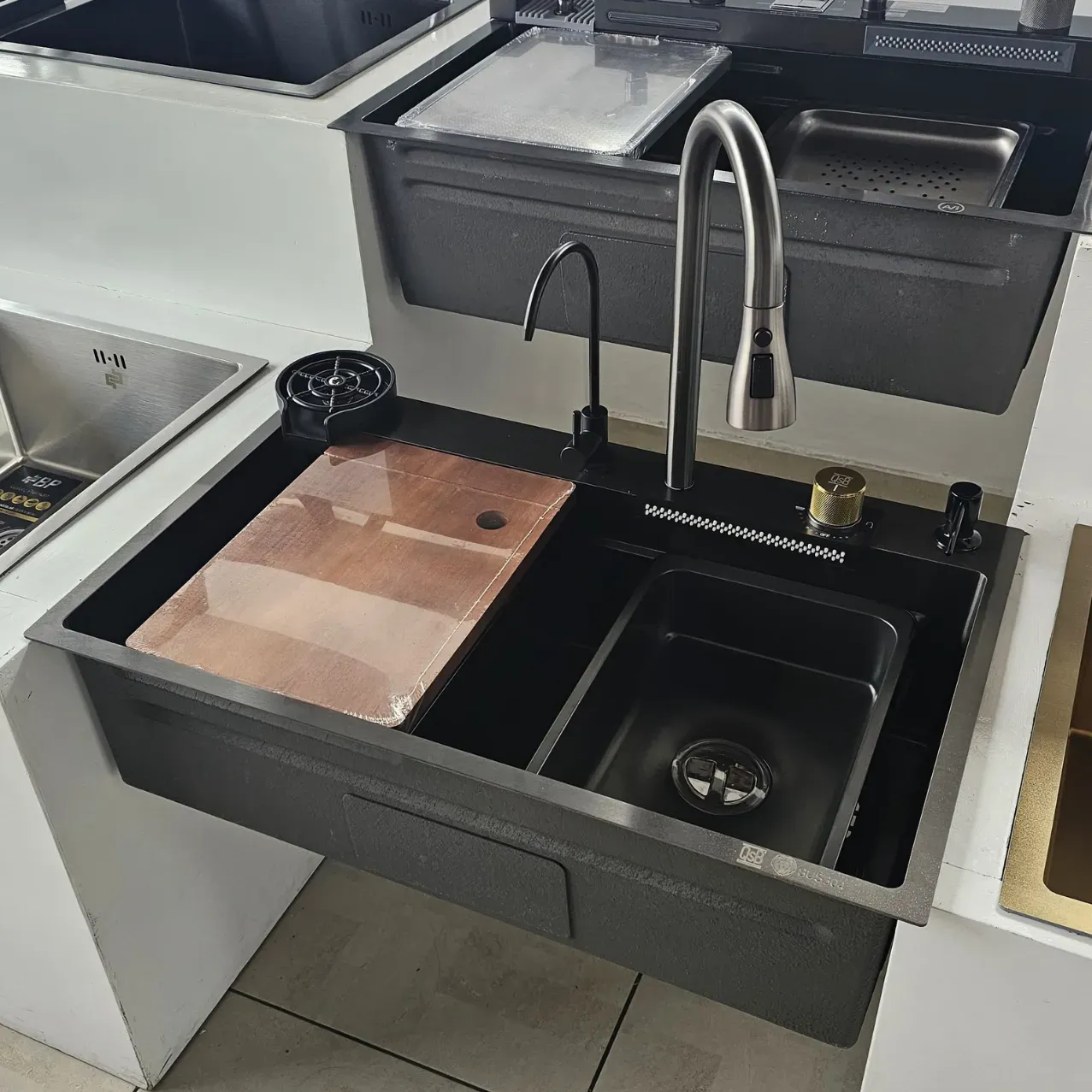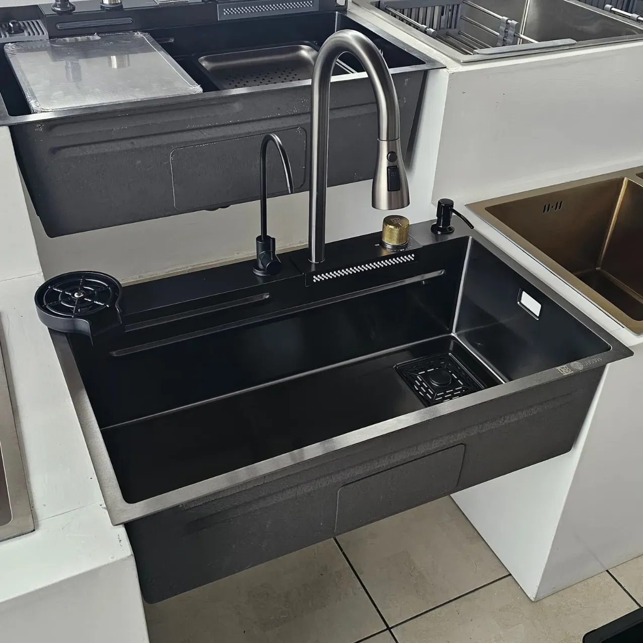 GPL0758 QSB FREGADERO CASCADA BLACK (NEGRO) + GRIFERIA + ACC. INOX (75X46) + PURIF