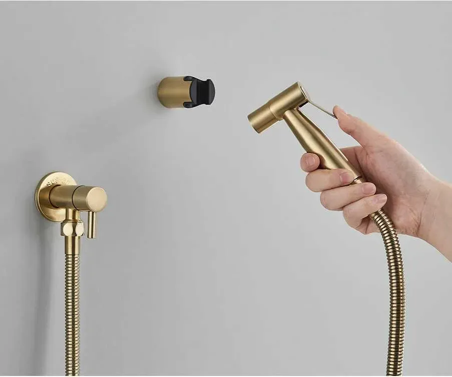 Bidé multifunción montado en la pared, diseñado para ofrecer una higiene íntima superior y mayor comodidad en el baño. Fabricado en acero inoxidable 304 con un acabado en dorado mate, este rociador manual permite controlar la presión del agua para una limpieza suave y efectiva. Su instal...
