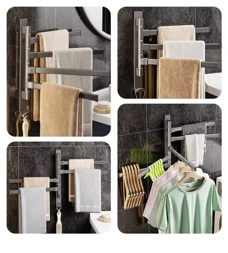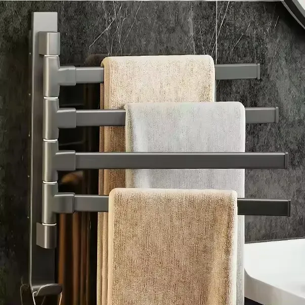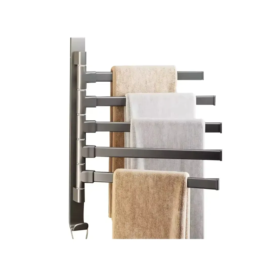 Toallero de pared con 5 brazos en color gris, ideal para colgar toallas en el baño. Diseño práctico y funcional que ahorra espacio. Añade un toque moderno a tu hogar con este accesorio imprescindible.