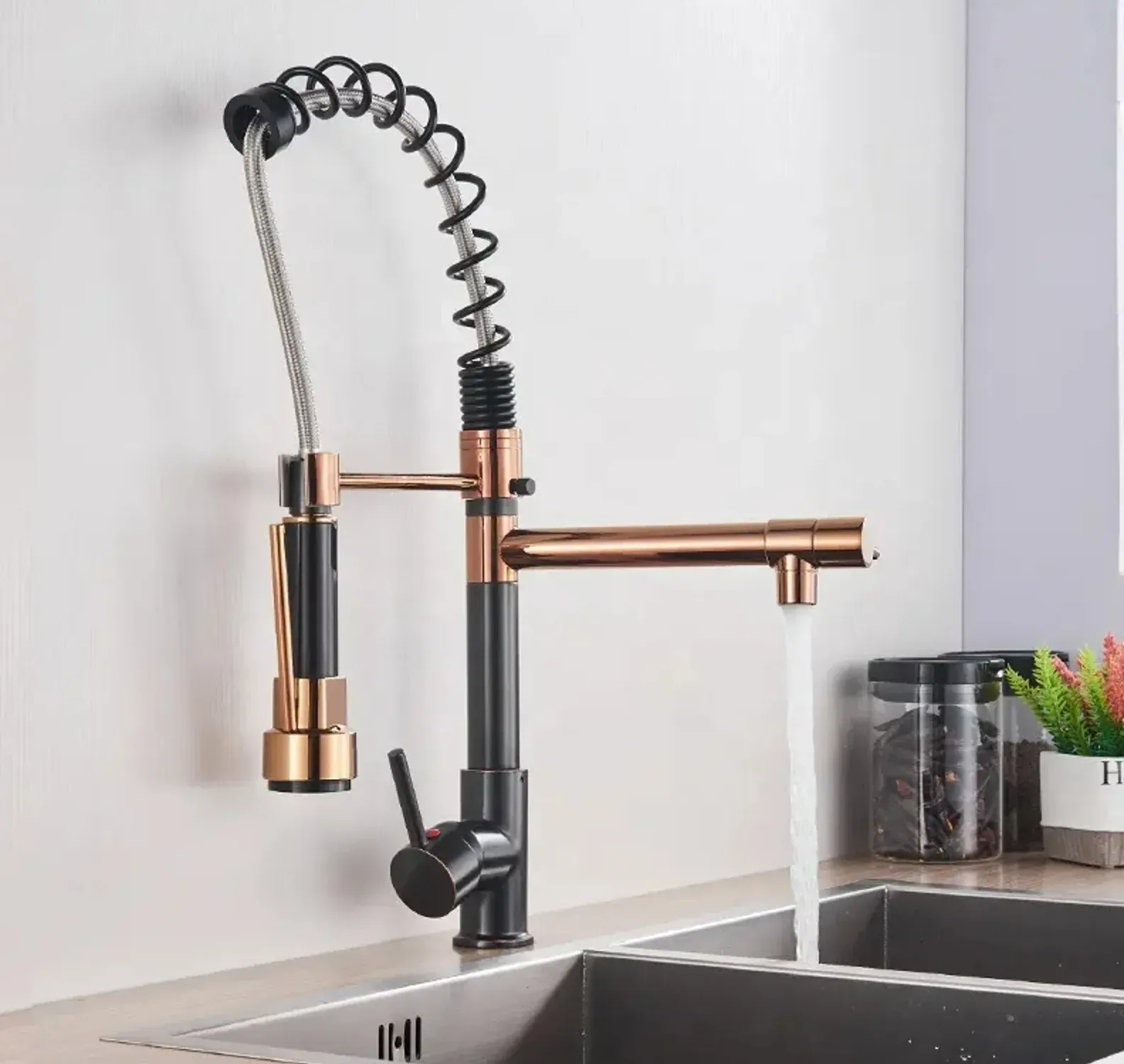 GPL0398 SUPERINO GRIFERIA DUAL NEGRO-COBRE ESPIRAL DELUX - BLACK/ROSE