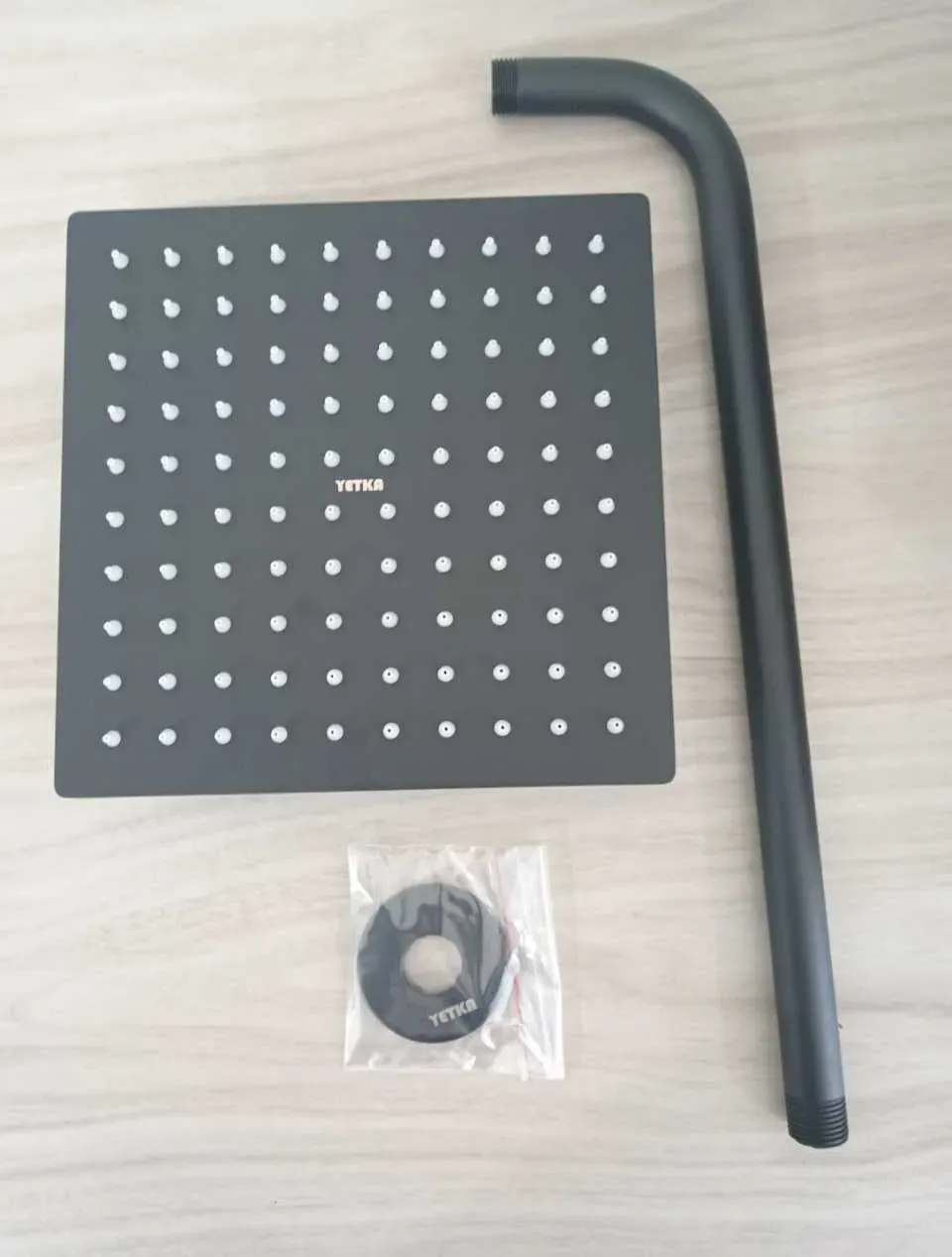 GPL0070 YETKA CABEZA DE DUCHA CUADRADA NEGRO MATE (20X20) C/TUBO REDONDO