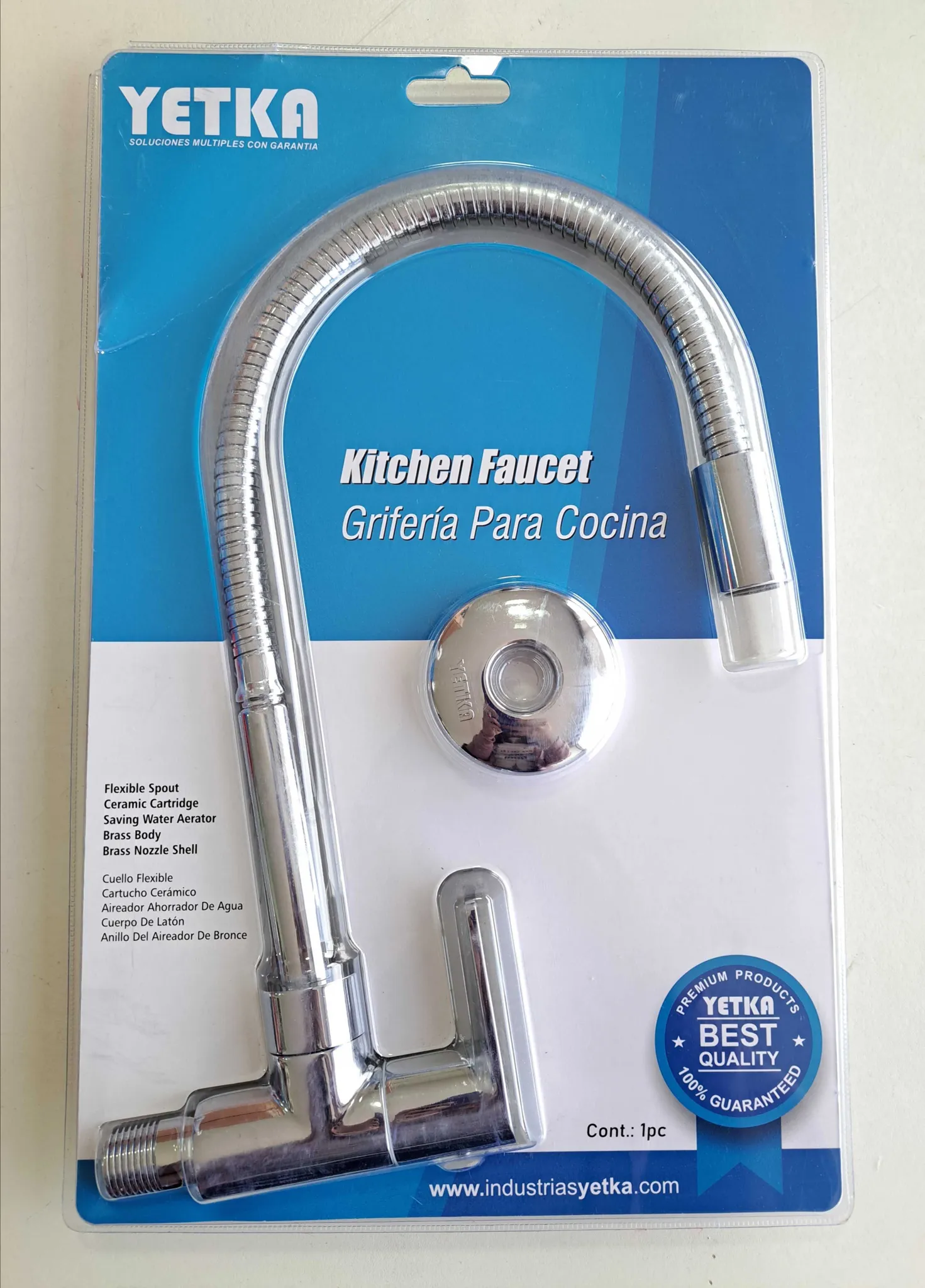 GPL0026 YETKA GRIFERIA P/COCINA FRIA PARED CUELLO FLEXIBLE - PLATEADO
